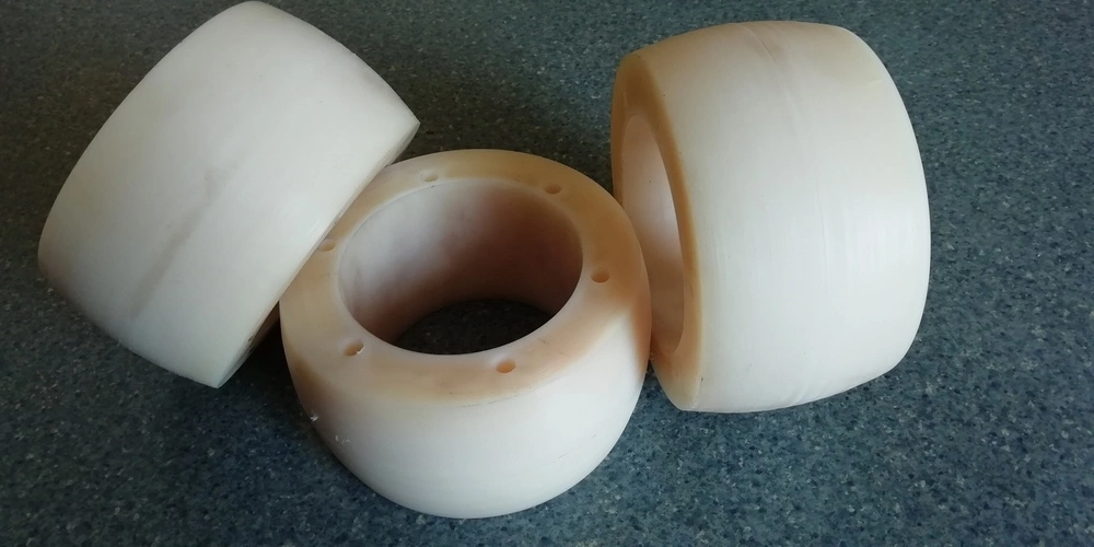 Изделия, изготовленные из полиуретана, имеют повышенную износостойкость по сравнению с полиэтиленовыми, металлическими, резиновыми. Благодаря сниженному коэффициенту трения они не портят конвейерную ленту(протяжной барабан) и устойчивы к налипанию материала к ним. Именно эти свойства делают полиуретан таким популярным в сельскохозяйственной и промышленной сфере.